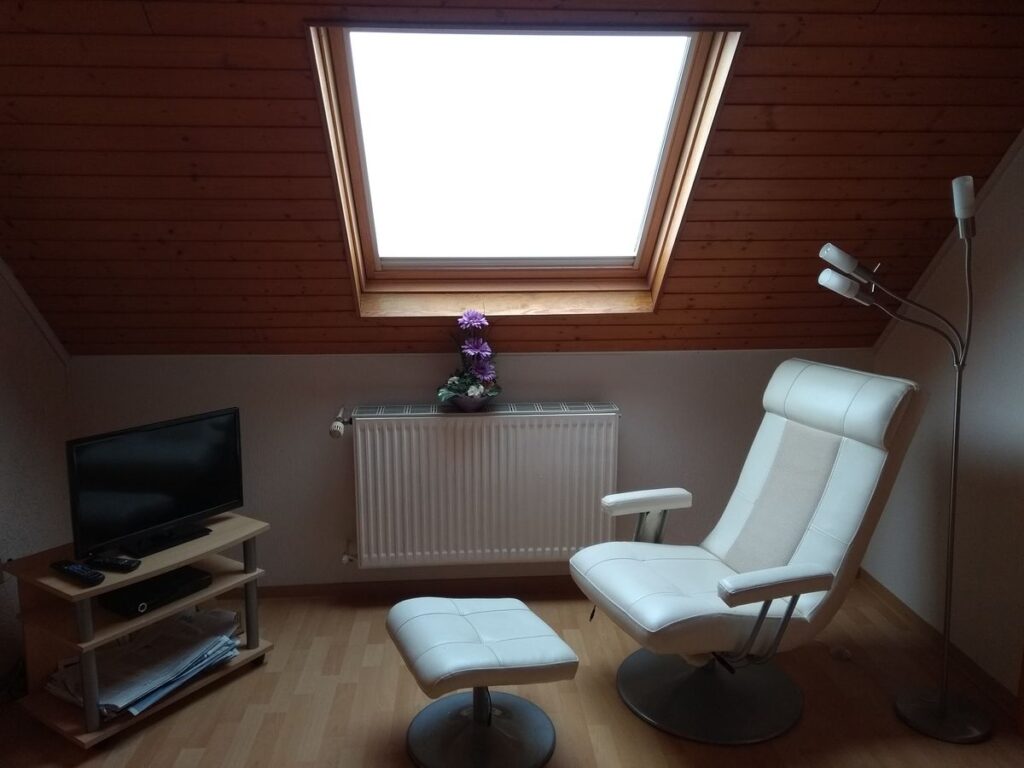 Die Ferienwohnung ist 2016 neu renoviert und eingerichtet worden. Sie verfügt über zwei Schlafzimmer, ein Wohnzimmer, Küche und Bad auf einer Etage im Dachgeschoss.